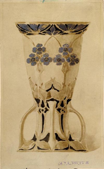 Exhibition photograph - plan of Pál Horti for an engobe vase, Christmas Exhibition of the Association of Applied Arts, 1897