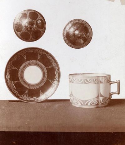 Exhibition photograph - porcelain coffee set designed by Pál Horti, Christmas Exhibition of the Association of Applied Arts, 1901
