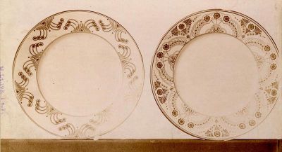 Exhibition photograph - porcelain plates designed by Pál Horti, Christmas Exhibition of the Association of Applied Arts, 1901