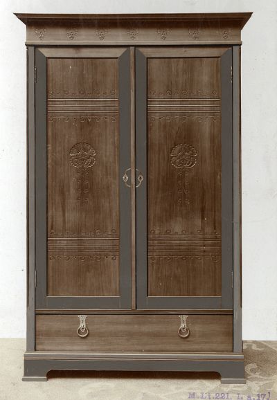 Exhibition photograph - wardrobe, designed by László Raffay; Christmas Exhibition of The Association of Applied Arts 1901