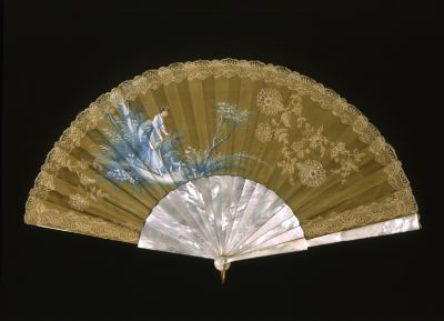 Materials: | brass; lace; mother-of-pearl sticks; repp silk (ribbed silk fabric) |