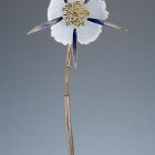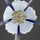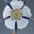 The slightly curved, silver stem can be screwed apart. The transparent, blue opaque wild rose of five petals (Rosa canina) is also detachable, etched matte. Between the petals, there is a long, narrow sepal, while the centre shows a number of tiny pistils. The sepals are covered with blue, the pistils with green enamel. According to the letter of Jenő Radisics written to Rene Lalique in 1904 (see Museum’s Archives, No. 261/1904), the flower was a part of Jean-Paul Aube's statue "La Reconnaissance", which depicted a female figure holding a flower in her hand. The statue won Grand Prix at the 1900 Paris International Exhibition and Jenő Radisics bought it. The flower acquired by the museum in 1904 probably replaced the missing original.