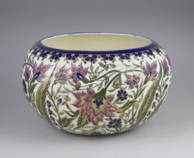 Inscription: | alján masszába nyomva: 701 / 8; máz alatt kobalttal: Zsolnay Pécs, TJM |