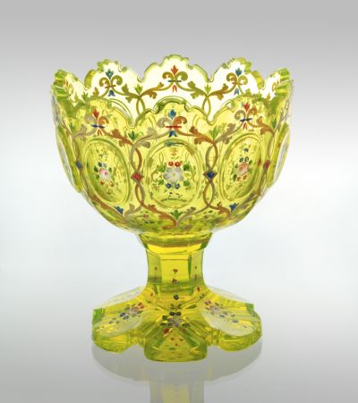 Techniques: | faceted; gilded; ground; mould-blown; polychrome enamel painting; raised star grinding |