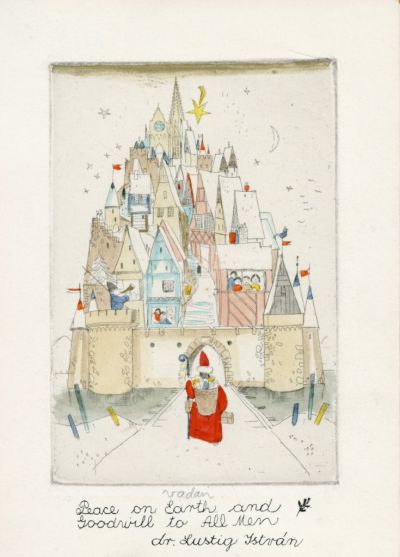 Grafika - City gate with Santa Claus (István Lustig)