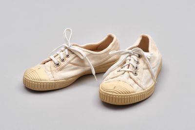 ‘Minden időben Tisza Cipőben’ [Always wear Tisza shoes], went the popular advertising slogan of the socialist era. These white children’s sneakers (known as dorkos at the time) were made by the Tisza Shoe Factory in Martfű, which also made sports shoes for Adidas. These sneakers came in several colours, and this pair was donated to the museum by a private individual.