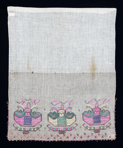 Materials: | canvas; metal yarn; nettle linen (presumably); silk |