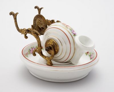 | Inscription: | a tintatartó függőleges oldalain, szimmetrikusan elhelyezett, aranyozott réz rátéteken, domború körirat: * ENCRIER * J. L * BASCULE * PARIS |