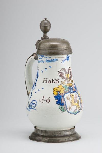 Jar with pewter lid - With coat of arms and the inscription 'Hans Roth-1699'
