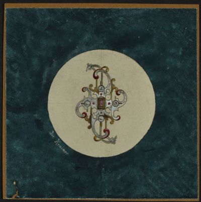 Inscription: | a háttéren, követve a kör ívét: „Jos. Krainer”. hátul: „Magyar zománcozott / aranyékszer / XVI-XVII. sz. |