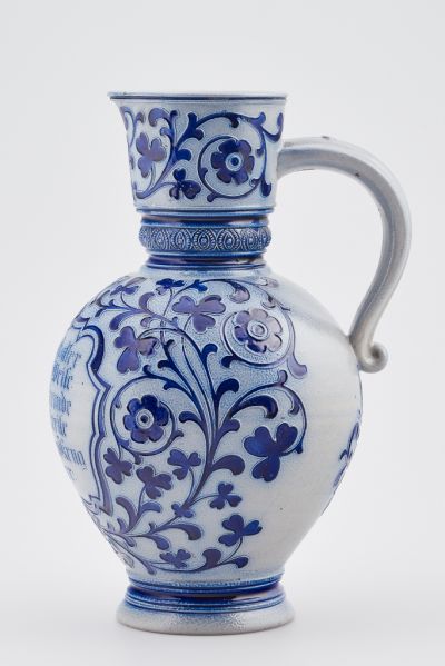 | Techniques: | moulded decoration; painted in blue; salt glazed |