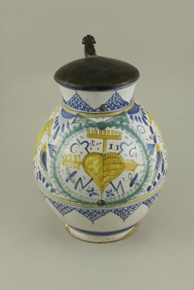 Techniques: | polychrome, paint melting into the glaze; thrown |