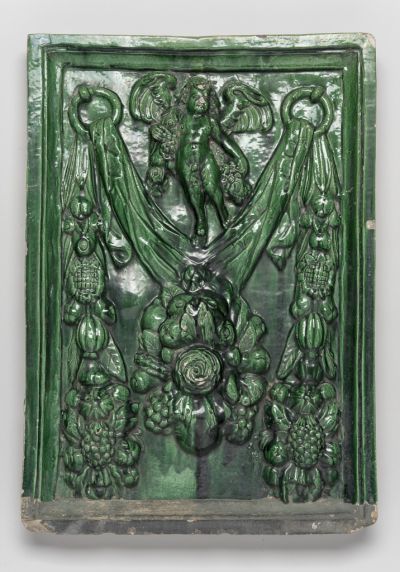 Techniques: | covered with green lead-glaze; pressed in mould by hand |