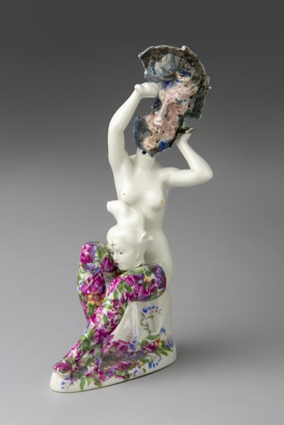 Techniques: | assembled cast parts; decorated with transfer print (decal); hand-shaped elements; painted in polychrome overglaze; platinum painted |