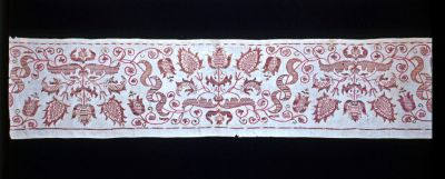 Techniques: | embroidered in silk thread; embroidered with gilded silver thread |