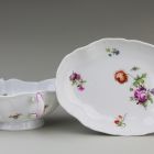| Inscription: | a tál alján masszába nyomva: 23; máz alatt kobalttal festve jogar. Az alátét alján masszába nyomva: 1; máz alatt kobalttal festve jogar. |