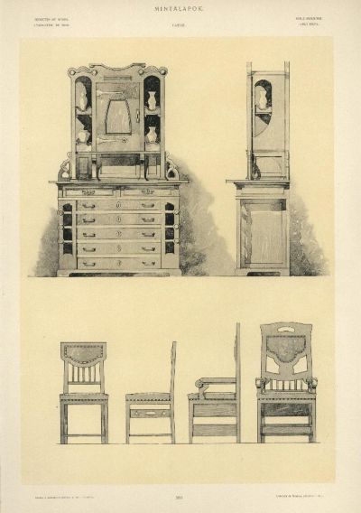 - Szerk.: Szeterényi József: Bútoripari mintalapok iparosok és ipariskolák számára. Magyar Iparművészeti Társulat, Budapest, 1901. - III. füzet, 160. lap.