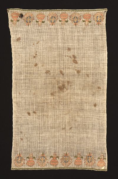 Materials: | gilt metal yarn; nettle linen; silk yarn |