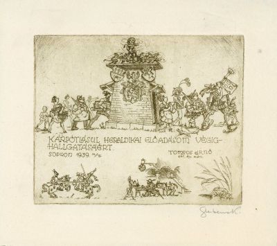 Occasional graphics - Announcement card: As compensation for listening to my heraldic lecture, Ernő Tompos