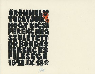 Occasional graphics - Announcement of birth: little Ferenc was born: Dr. Ferenc Bordás and his wife