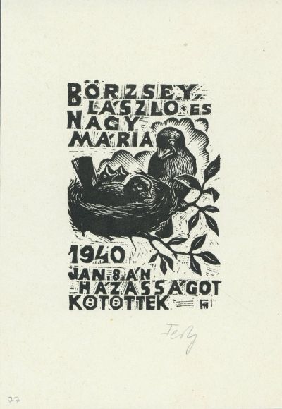 Occasional graphics - Announcement of wedding: László Börzsey and Mária Nagy