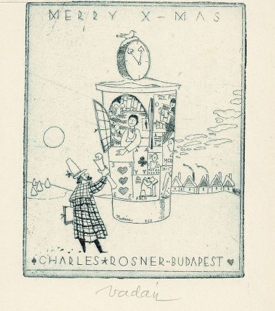 Occasional graphics - Christmas's greeting card: Merry X-mas Charles Rosner Budapest