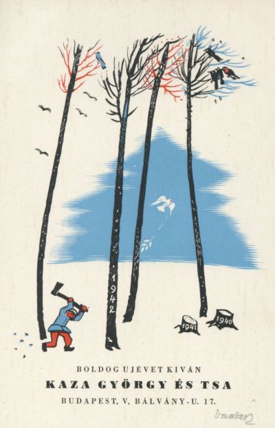 Occasional graphics - Greeting card: Happy New Year wishes from György Kaza and Co, Budapest ... 1942