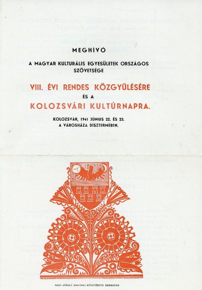 Occasional graphics - Invitation: Hungarian Cultural Associations VIII. Annual General Assembly and Cultural Day in Kolozsvár