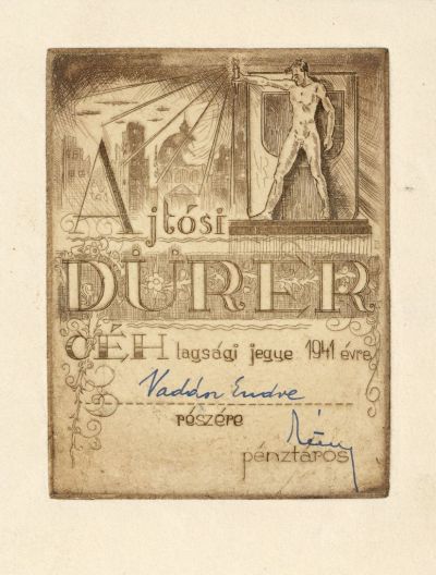 Occasional graphics - Membership card of the Ajtósi Dürer's Guild with handwriting for Endre Vadász