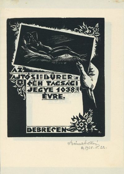 Occasional graphics - Membership card: The Ajtósi Dürer's Guild 1938.