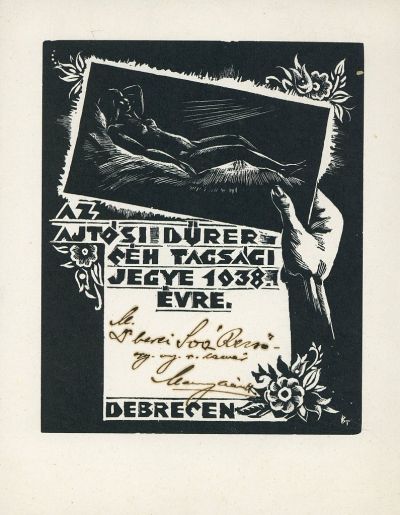 Occasional graphics - Membership card: The Ajtósi Dürer's Guild for Rezső Soó of Bere 1938.