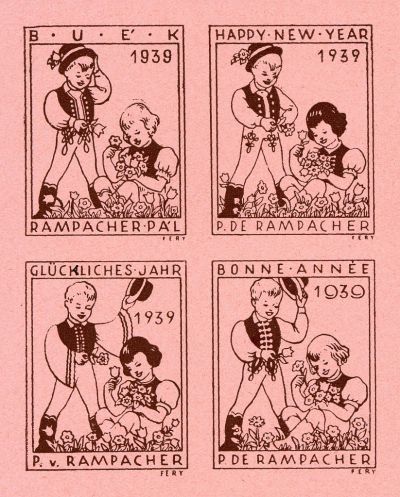 Occasional graphics - New Year's greeting: 1939 Happy New Year Pál Rampacher (in four languages)