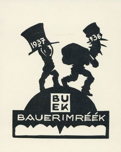 Occasional graphics - New Year's greeting: Happy New Year 1937. The Imre Bauer family.