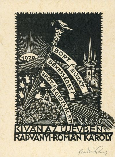 Occasional graphics - New Year's greeting: Károly Radványi-Román wishes you wine, wheat, peace, strength and health in the New Year