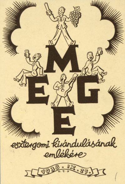 Occasional graphics - Postcard: commemorating MEGE's trip to Esztergom, signed by others on the back