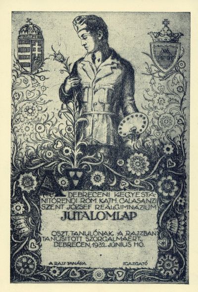 Occasional graphics - Reward card: "kegyesrendi" Roman Catholic St. Joseph of Calasanc Sience High School in Debrecen