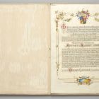| Materials: | goatskin; metal studs; parchment; repp silk (ribbed silk fabric); silk cord |