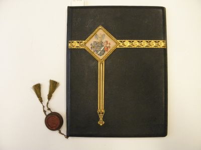 Inscription: | a hátsó tábla előzékén a jobb alsó sarokban aranyszínű kerek címke: Morzsányi József díszműkészítő, Budapest, IV. Eskü út 5. |