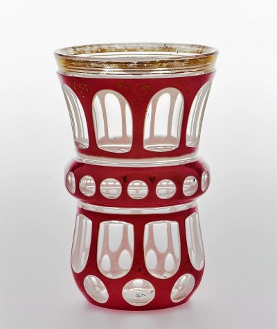 Materials: | colourless glass; layered glass; milk glass (lattimo); pink glass |