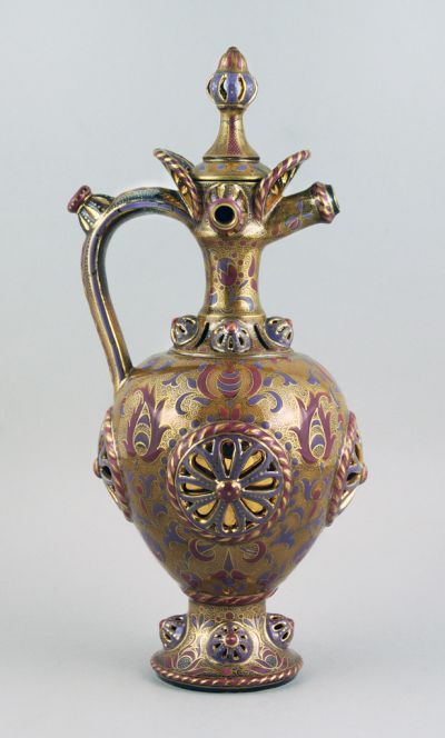 Techniques: | assembled from thrown parts; gilded; modelled; painted with polychrome glazes; pierced decoration |