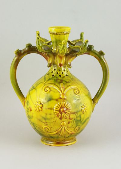 Techniques: | marbled glaze; with applied sculpted decoration |