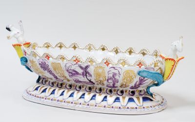 Techniques: | gilded; hand-shaped; painted with polychrome overglazes; pierced; pressed |