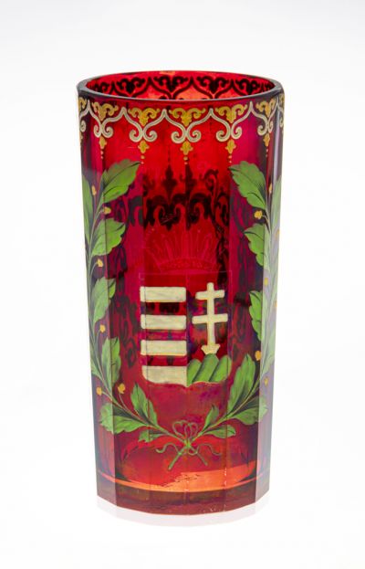 Techniques: | gilded; ground to planes; mould-blown; polychrome enamel painting; stained with copper ruby |