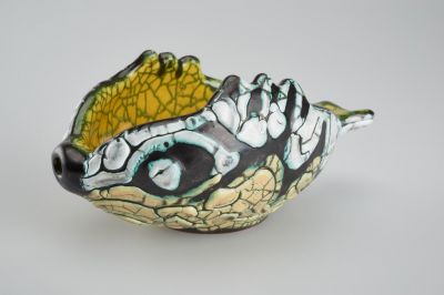 Techniques: | crawl glaze; hand-shaped; thrown; with polychrome coulé glazes |