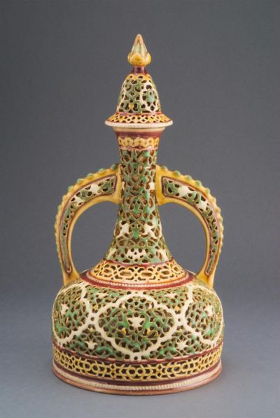 Techniques: | gilded; pierced decoration; pressed in relief mould; thrown in relief mould; with high-fired polychrome glaze |
