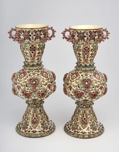 Techniques: | contoured with gold; gilded; moulded decoration; painted with polychrome glazes; pierced decoration |