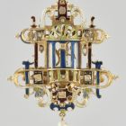 The naked figure of Fortune stands on a globe in a cartouche-like frame. Dominant colours of the enamel are white, red, yellow and green. There is a plan for a Fortune-pendant made by Etienne Delaune around 1560 in the Ashmolean Museum of Oxford. The influence of the jewel plans made by Pierre Woeiriot around 1550 can be traced on the aedicule framework and motifs.
