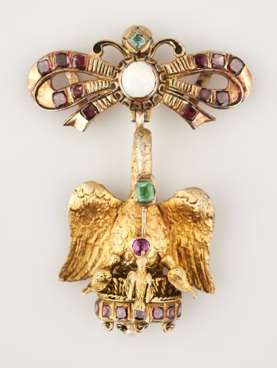 Materials: | almandine; carnelian; emerald; pearl; silver-gilt |