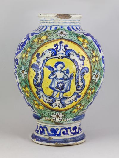 Pharmacy jar - with an angel holding the veil of Saint Veronica