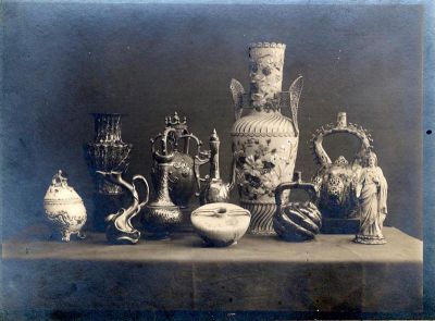 Photograph - Decorative objects: vases, sugar bowl, jug, statue of Christ, etc. 11 objects.